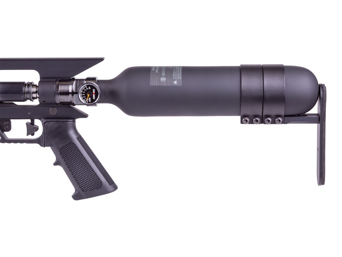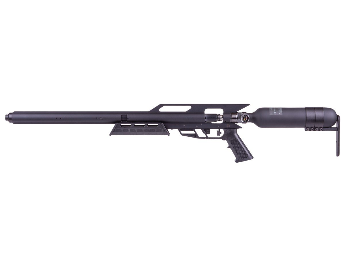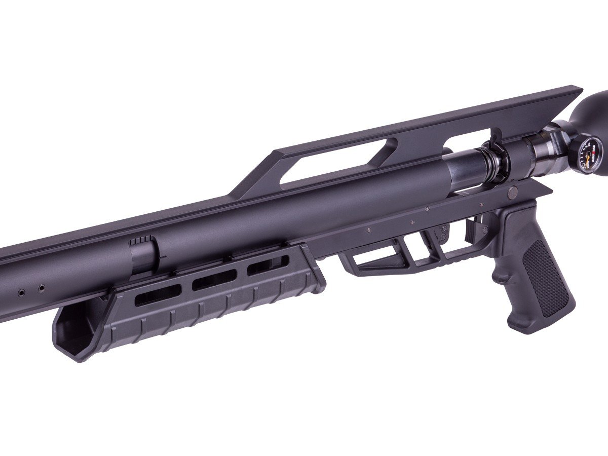 It is proudly made in the USA and is constructed from quality materials meant to perform and take abuse. An integrated 500cc carbon fiber bottle (that also acts as the buttstock) with a 4,500 PSI max pressure provides enough air to get the job done. It also features an M-LOK foregrip to mount your choice of accessories.