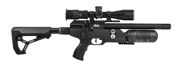 The Pathfinder XR measures a carbine length 616mm, and with its folding stock retracted, just 416mm. This results in a rifle that is incredibly fast onto the target and useful in tight situations. It weighs just 2.9kg, and yet can deliver over 200 shots. Super compact and able to be easily transported in a backpack or optional purpose-built rifle slip.