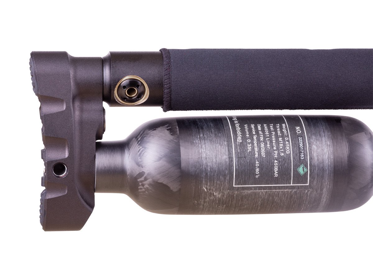 It comes standard with a 350cc bottle to provide you with 10-16 shots per fill, and is more than capable of hunting small game or pests. Because it has a top and bottom Picatinny rail, there are more than enough places to mount any type of accessory. Rifle weights range from 5.75 lbs to 7.25 lbs making your new rifle light enough to carry in an EDC pack for extended hours. It’s built in the USA to the highest standards and is designed for precision.
