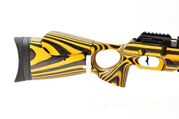 Careful attention has been given to weight distribution, ergonomics, and overall handling. Because of this approach, extended shooting sessions are supported, fatigue is reduced, and accuracy is maintained shot after shot. Moreover, the distinctive yellow laminate stock is crafted not only for visual appeal but also for durability and tactile comfort.