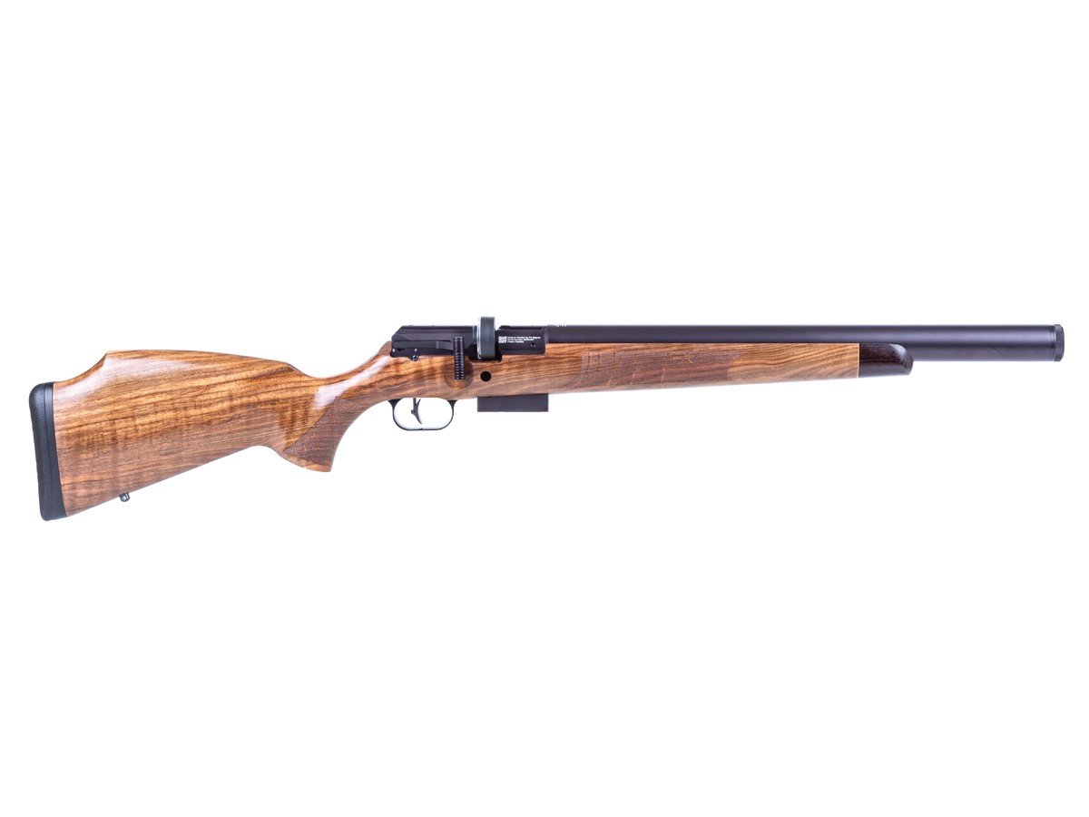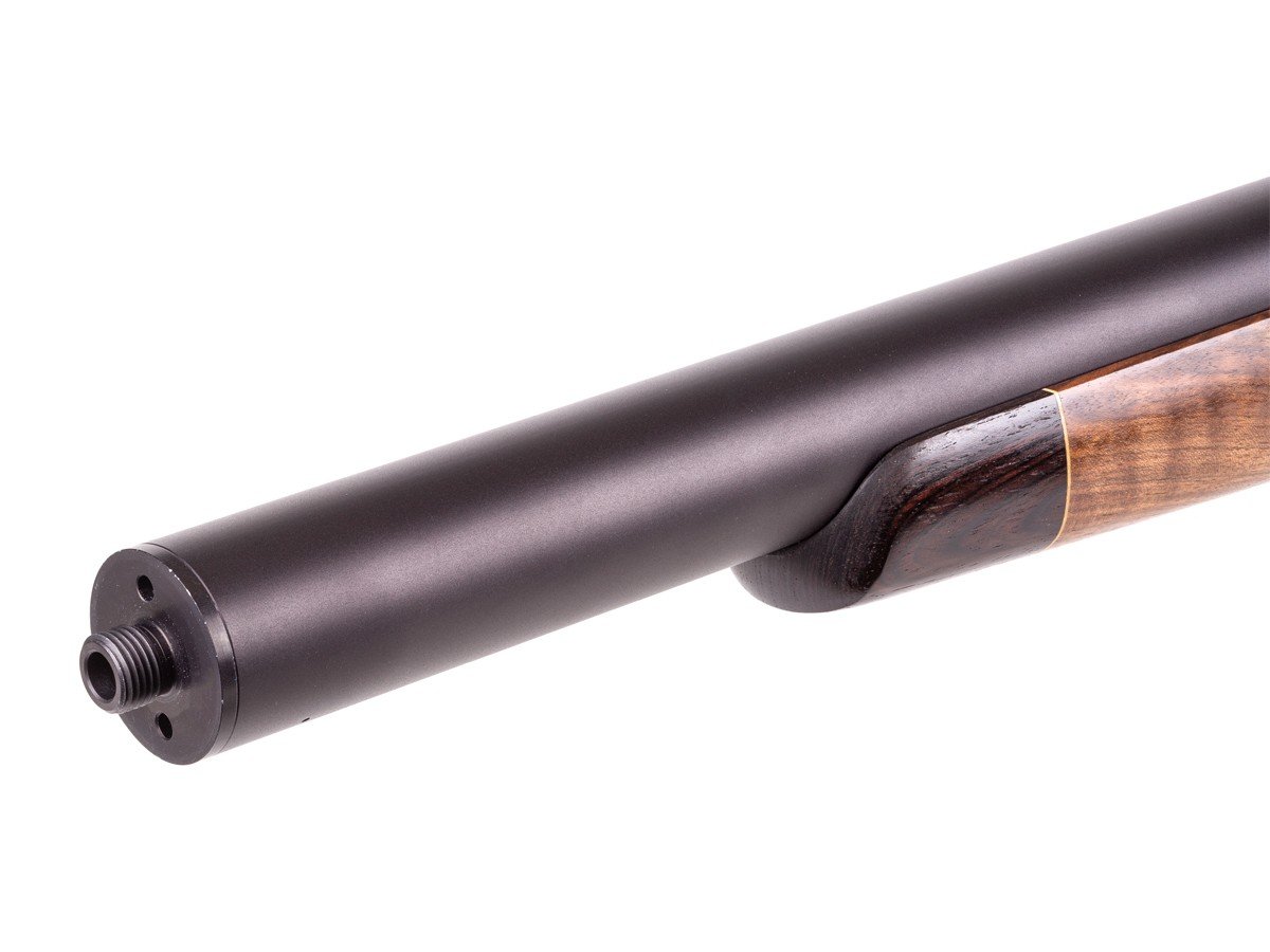 This airgun gives you added stability and looks similar to a typical firearm rifle because it has an aluminum over the barrel air cylinder that you can upgrade with an optional carbon fiber cylinder. With this model of the air rifle, you get a stunning Minelli walnut grade 2 stock with a superior feel and fine Italian styling. A checkered forearm and pistol grip give you a better hold while the added hardwood forend cap and reimagined buttpad improve looks and handling.