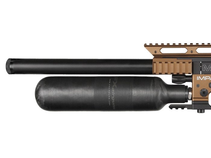- Shots per fill: 330 in .22, 160 in .25 and 105 in .30