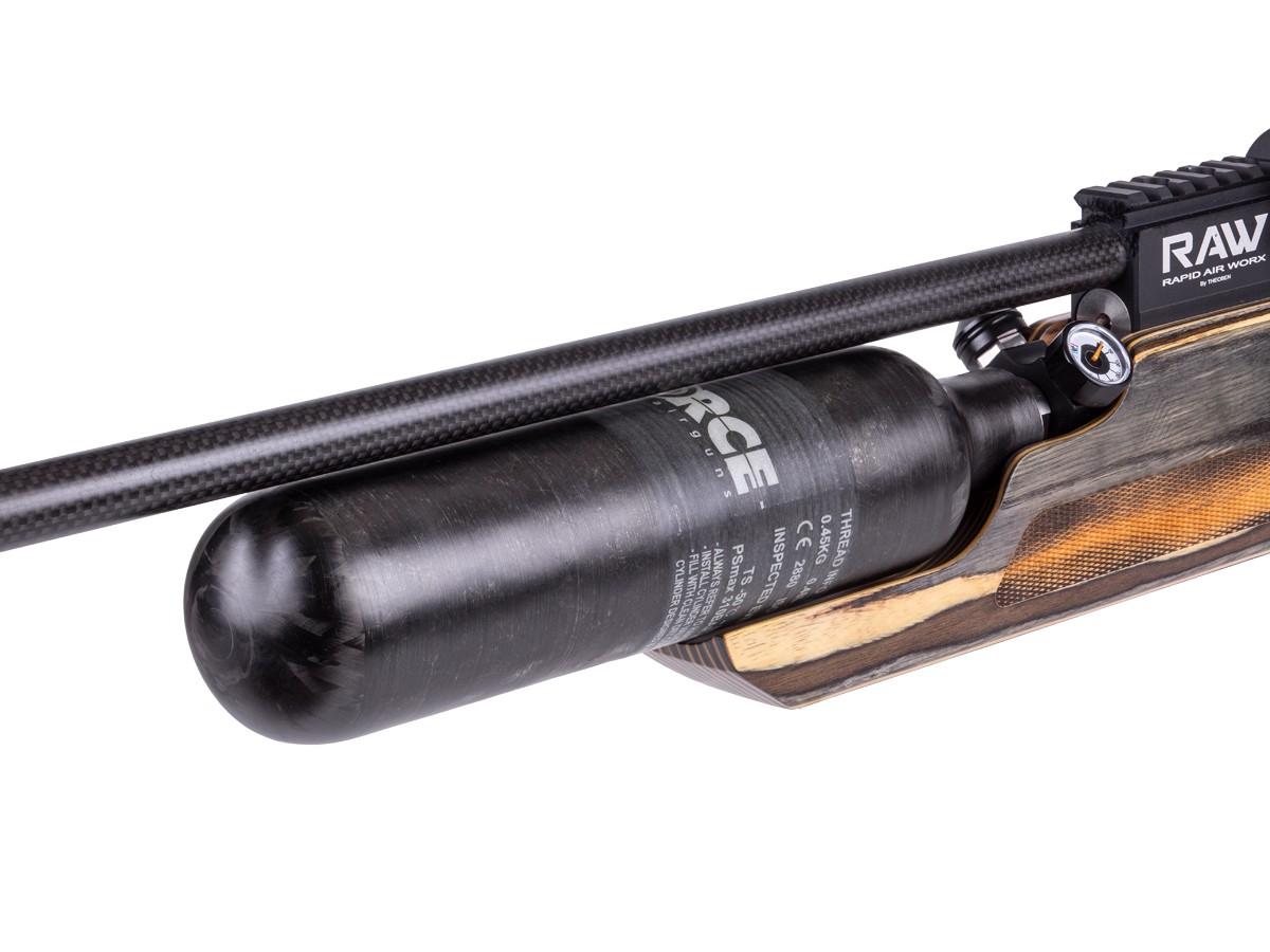 - Carbon fiber-wrapped barrel with 1/2×20 threading
