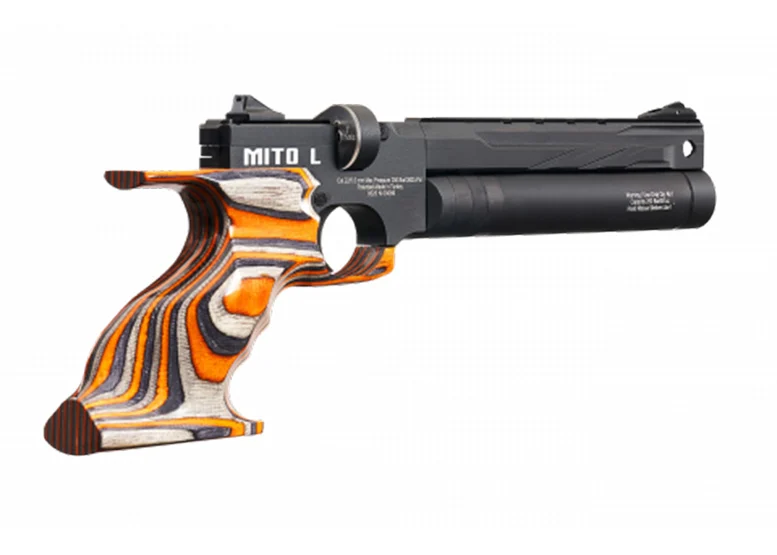 The Pistol comes well presented in a sturdy soft case and also has a beautifully finished laminate stock. The Mito is perfectly balanced and has an ambidextrous palm swell grip. The action features an 11mm dovetail rail so sights can be easily fitted.