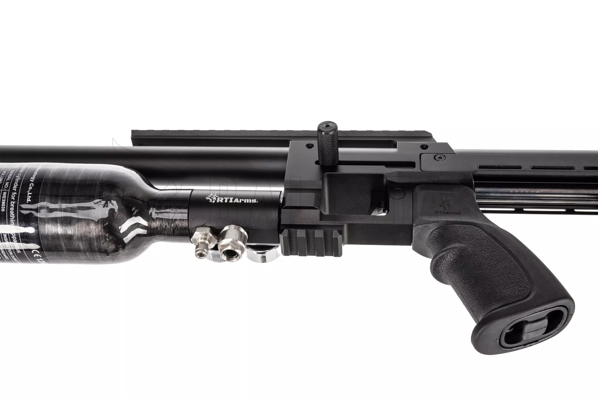 A robust high-pressure cylinder anchors the Priest 2’s performance. RTI Arms designs its reservoir for optimal balance between capacity and portability. Equipped with a quick-fill port and an easy-to-read pressure gauge, refilling becomes seamless.RTI Priest 2