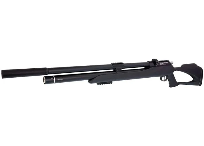 Below the forend, a Weaver/Picatinny accessory rail is situated for mounting accessories such as a bipod, flashlight or laser and the shrouded barrel has an integrated moderator. Because the Snowpeak M25 is regulated, the pressure will be the same for every shot and this uniformity also means a good accuracy.