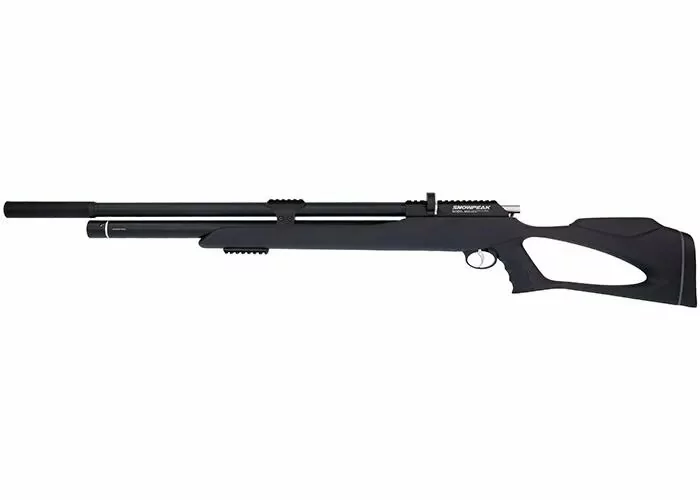 Below the forend, a Weaver/Picatinny accessory rail is situated for mounting accessories such as a bipod, flashlight or laser and the shrouded barrel has an integrated moderator. Because the Snowpeak M25 is regulated, the pressure will be the same for every shot and this uniformity also means a good accuracy.