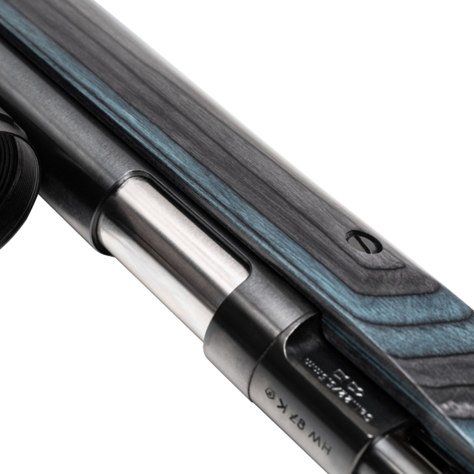 The Laminate Blue variant elevates the HW97 K platform in both function and aesthetics. Because laminate construction involves layers of wood fused under pressure, the stock resists warping far more effectively than single-piece hardwoods. Additionally, the striking blue palette introduces a sense of individuality and modern expression.